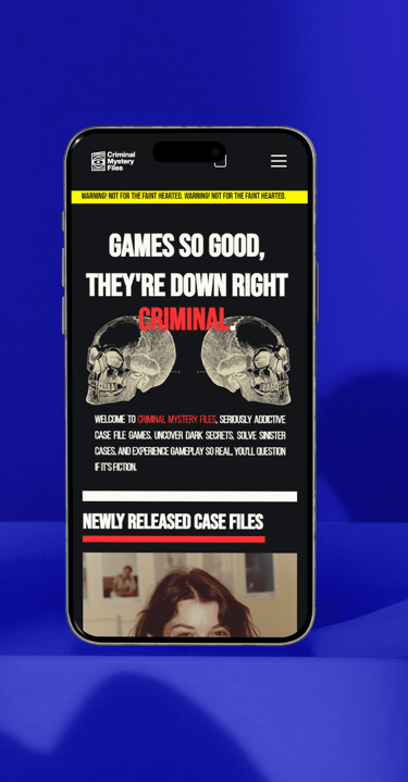 Criminal Mystery Files is a start-up interactive game studio developing immersive, cinematic murder mystery case file experiences.